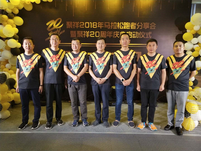 2018年8月26日公司高管及所有參加 “2018鄂爾多斯國際馬拉松”的公司員工齊聚公司6樓,參加以“跑過時間”為主題的“聚祥2018年馬拉松跑者分享會暨聚祥20周年慶典啟動儀式”。